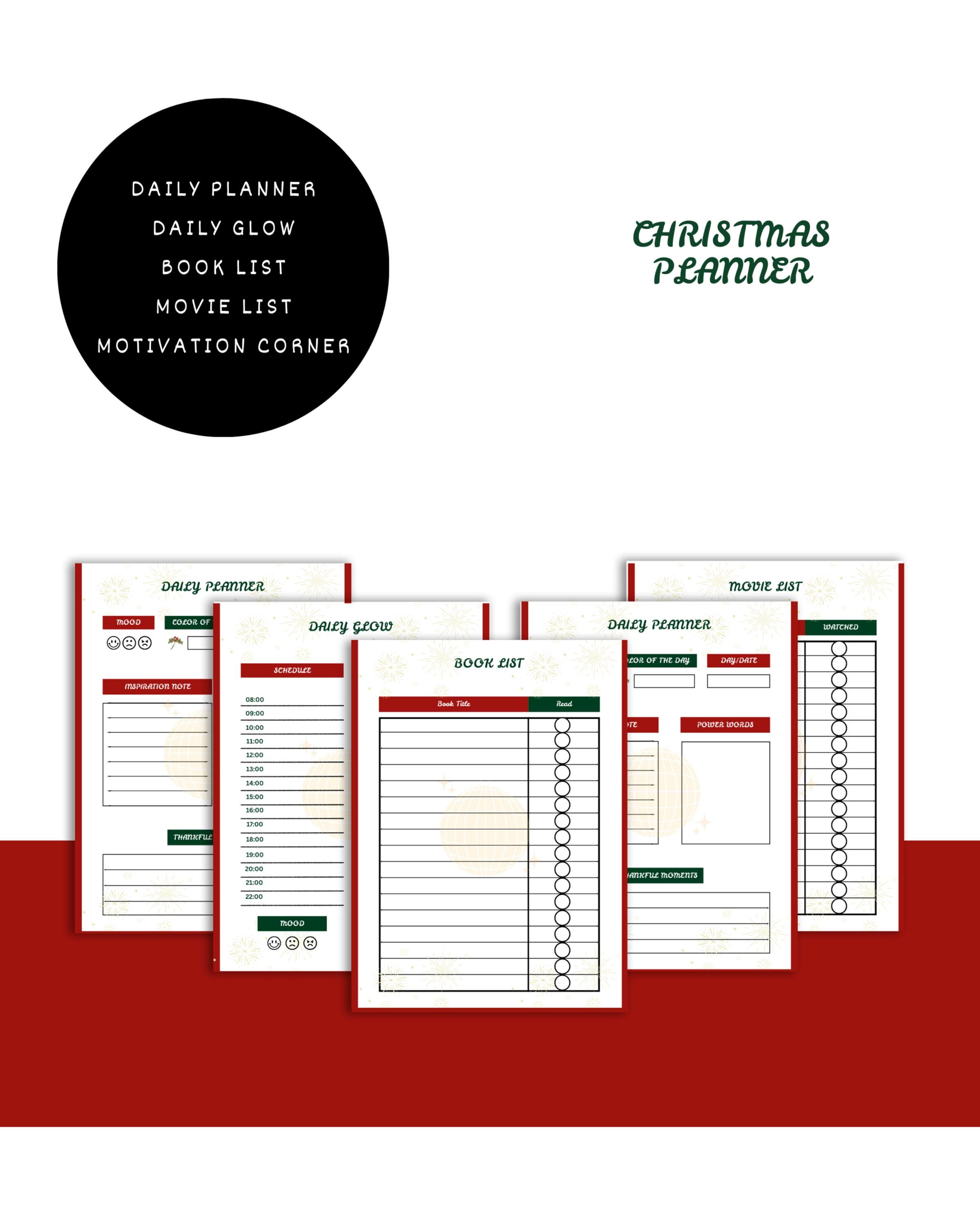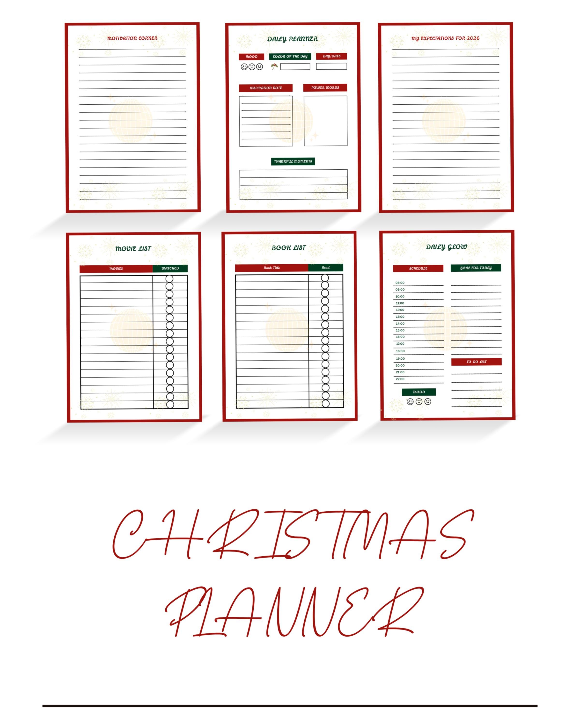 Get ready for 2026 with this festive Christmas Daily Planner! With 6 pages of Daily Glow, gratitude, book, and movie lists, this printable PDF keeps you organized in style. Instant download, A4 format, no shipping needed. Add to cart now!”