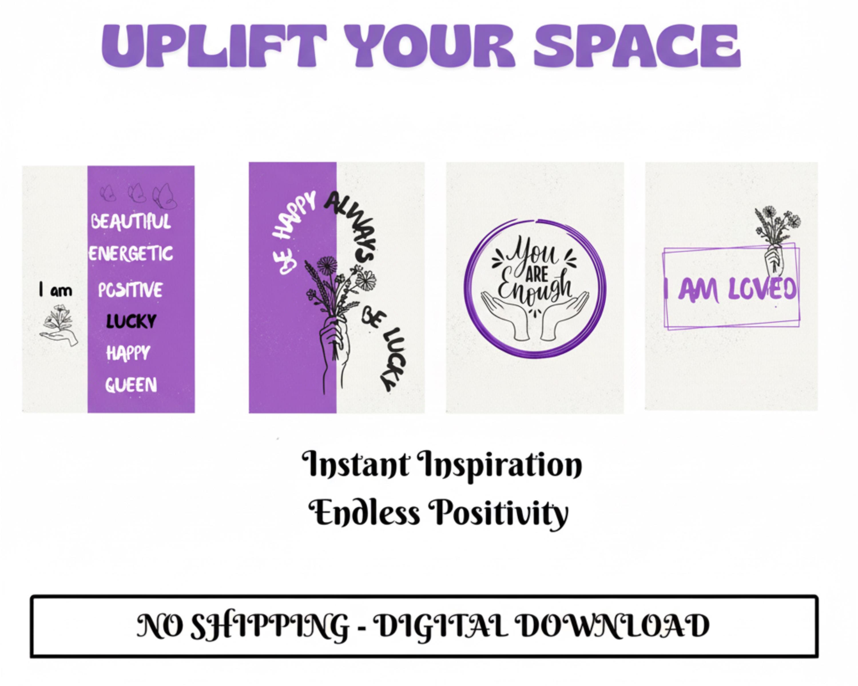 Purple Positive Affirmations Wall Art Set of 4 - Digital Download Printable